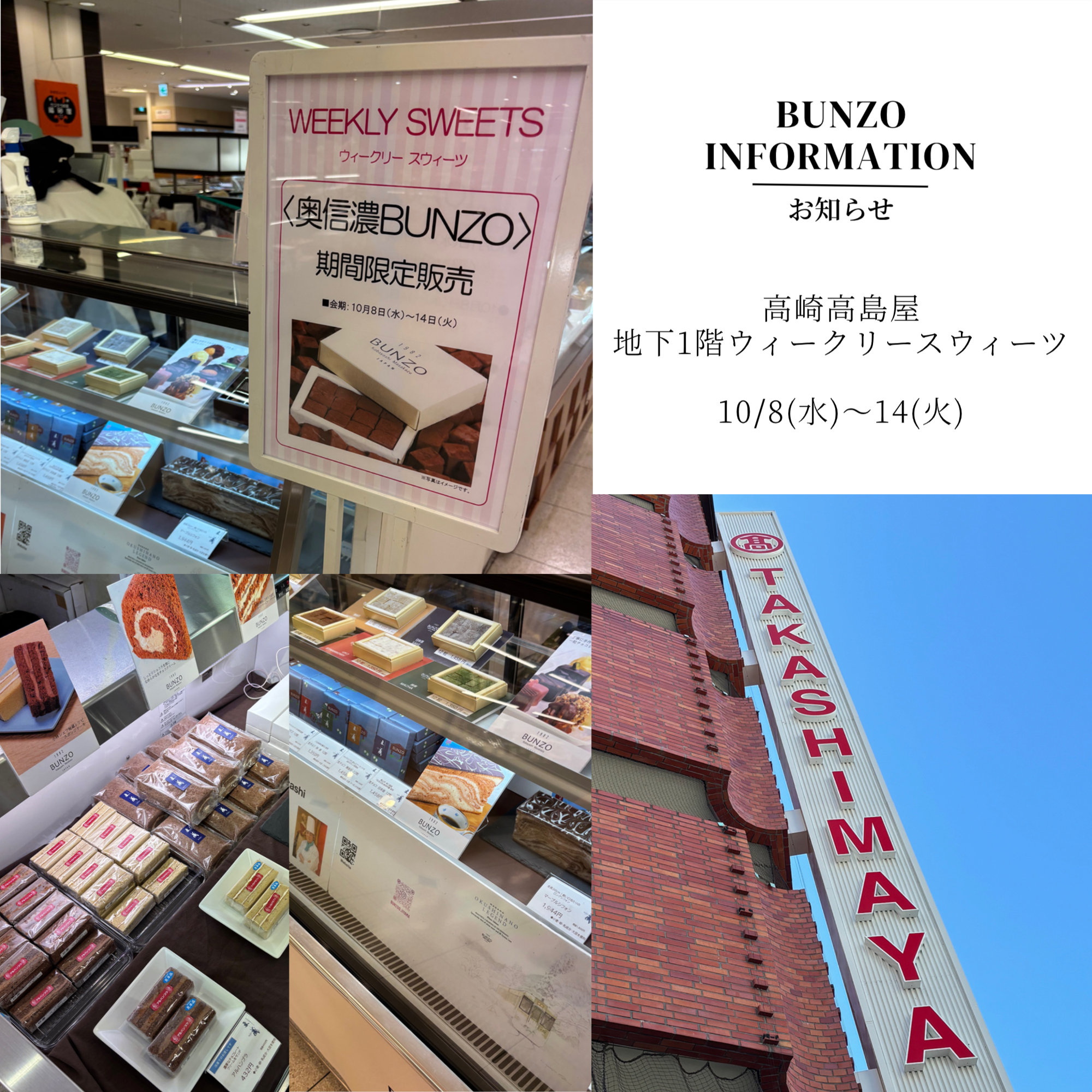 2023.12.122025.10.08 高島屋 (2)IMG_8298リンゴフェア (1)オンライン マーブルNスタオンラインonline_storeインスタ1open_info2access_newstory_newkakegami オンラインショップ NEWS 更新日2025/10/08 ストーリー 駐車場&アクセス シーズンビジュアル ー ー ー ー ー ー ー ー ー ー ー ー ー PREV2025年 10月NEXT日月火水木金土282930123456789101112131415161718192021222324252627282930311 定休日 【営業時間】 10:00 〜18:00(水曜〜土曜日) 10:00 〜17:00(日曜・祝日) 【定休日】 月曜・火曜日※祝日の場合は営業 長野県飯山市大字飯山2529-1 奥信濃BUNZO “TEL”0269-67-0342 “FAX”0269-67-0343